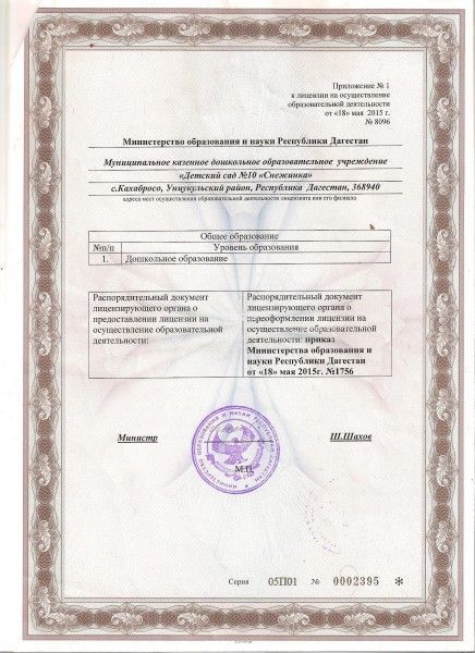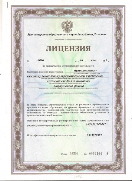 | Полное наименование образовательной организации* | Муниципальное Казенное Дошкольное образовательное Учреждение «Детский сад №10 «Снежинка» с.Кахабросо |